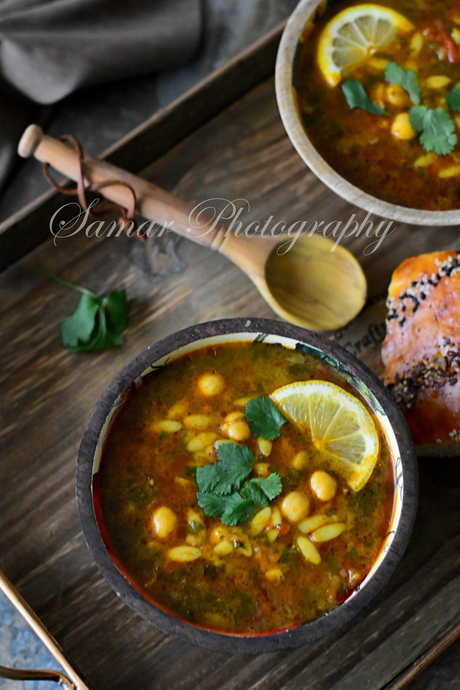 - Rectifier l’assaisonnement et servir la chorba accompagnée de quartier de citron et parsemée de coriandre ciselée et de menthe séchée.