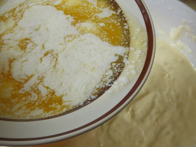 - Verser doucement le beurre fondu.