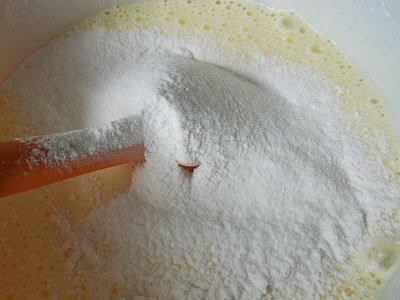 - Mélanger la farine, fécule de pomme de terre, levure. Tamiser et réserver.