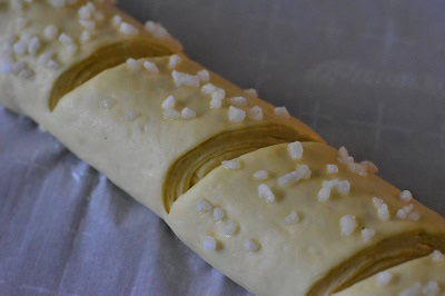 - Badigeonner de lait et faire des entailles à l'aide d'une lame de couteau. Parsemer si désirée de sucre perle, couvrir et laisser lever une seconde fois environ 30-35 minutes.