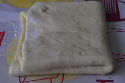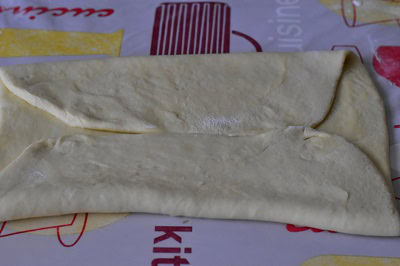 Dégazer la pâte et étalez sous forme de rectangle (comme pour la pâte feuilleté).