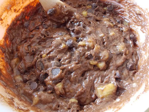 - Enfin incorporer le chocolat coupe grosses pepites ou utilise comme moi des pepites de chocolat.