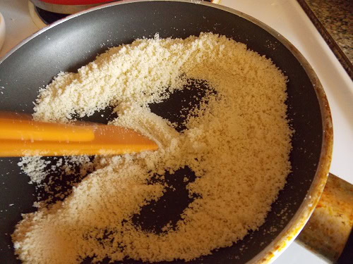 - Commencer par griller légèrement la poudre d'amande ou de noisettes ceci apportera de belle saveurs aux biscuits. Réserver.