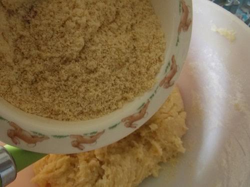 - Ajouter enfin la poudre d'amande sans trop travailler la pâte. La pâte est collante mais c'est normal.