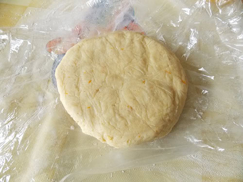 - Aplatir la pâte légèrement et filmer. Placer au frais 30 minutes.