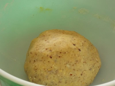 - Travailler la pâte pour la rendre homogène.Former une boule et la placer au frais 1h30 a 2 h en la filmant au préalable.