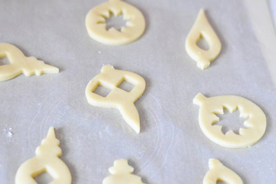 - Déposer sur une plaque recouverte de papier sulfurisé et faire un trou en haut de chaque biscuit en vous aidant d'un cure-dent.