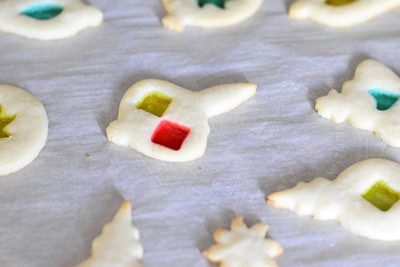 - Et enfin cuire les biscuits vitraux soit sur une plaque recouverte de papier sulfurisé ou encore une plaque en silicone afin que les bonbons ne collent pas à la plaque.
