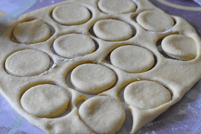 - Découper de petits disque de 6-7 cm de diamètre à l'aide d'un emporte-pièce.