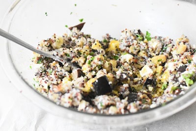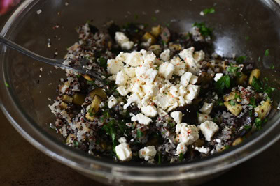 - Piller au mortier les graines et les ajouter au saladier. Incorporer le reste des ingrédients (menthe et persil), feta émiettée, zeste de citron, et assaisonner de sel et poivre. Ajouter les oeufs un à un il se peut que vous ayez besoin d'incorporer un seul oeuf.