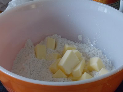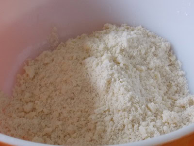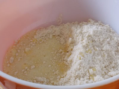 - Dans un second bol mélanger la farine à la levure. Incorporer le beurre et sabler du bout des doigts.