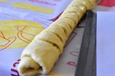 - rouler la pâte sur elle-même afin de former un long boudin.