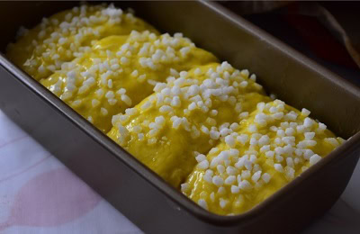 Retirer la pâte du réfrigérateur, fariner le plan de travail et façonner votre pâte j’ai rouler la pâte en un long boudin et j’ai découpé 4 pâtons, forme des boules et place dans un moule à cake. Couvrir et laisser lever 2 heures.