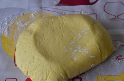 - Introduire le beurre en morceaux. Pétrir quelques minute jusqu’à ce que le beurre soit complètement incorpore à la pâte. La pâte sera un peu liquide (c'est normal).