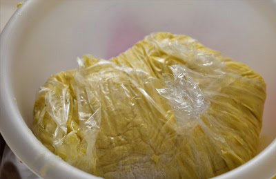 Normalement quand vous placez la pâte au réfrigérateur toute une nuit il y aura une poussée prenez soin de filmer au risque qu’elle ne dessèche.