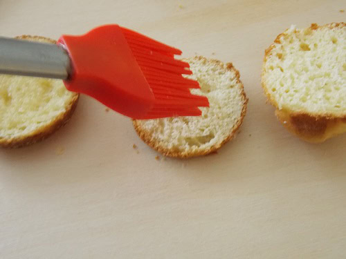 Ou alors on peut couper en 3 la brioche dans la hauteur, imbiber généreusement de sirop. Couvrir d’une fine couche de crème pâtissière (ou crème diplomate). Déposer la seconde tranche de brioche préalablement imbibées des 2 cotés. Remettre de la crème pâtissière. Et enfin déposer le chapeau imbibe de sirop.