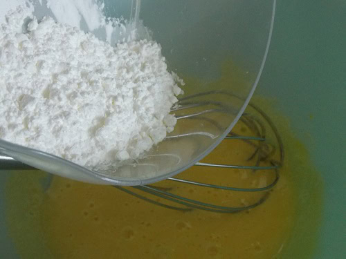 Fouetter les jaunes d’oeufs ainsi que le sucre. Incorporer la maïzena.
