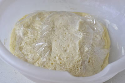 - Former un boule, couvrir de film plastique et d'un torchon et laisser doubler de volume.