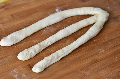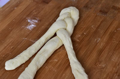 - Façonner une tresse et déposer délicatement sur une plaque recouverte de papier sulfurisé.