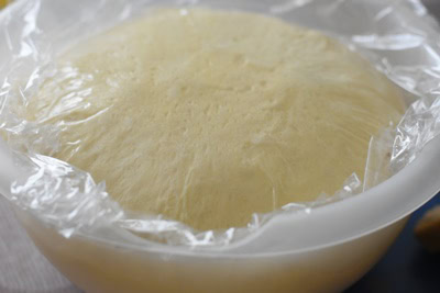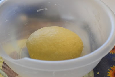 - Former une boule et couvrir la pâte de film plastique ainsi que de torchon. Laisser doubler de volume dans un endroit à l'abri du courant.