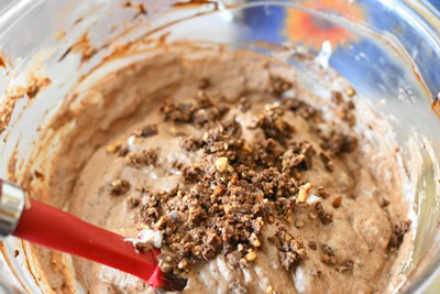 Ajouter enfin délicatement a la spatule les ferrero Rocher émiettées.
