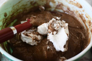 - Tamiser la farine et le cacao et les incorporer aux oeufs battus.
