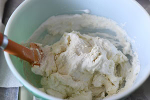 - Incorporer à la spatule le mélange poudre d'amande et sucre glace.