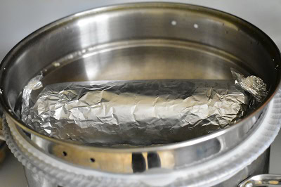 Enveloppez le boudin obtenu dans deux feuilles de papier aluminium pour le maintenir en forme pendant la cuisson.