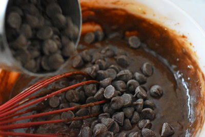 - ajouter les bananes écrasée en purée ainsi que les pépites de chocolat.