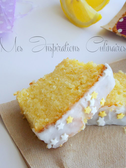 - Entre temps préparer le glaçage à base de sucre glace et de jus de citron on doit obtenir un glaçage assez consistant ni trop liquide ni trop sec. Le verser sur le cake et laisser sécher.