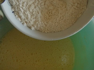 - Incorporer la farine mélangée à la levure ainsi que le beurre fondu.