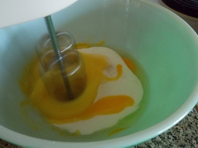 - Fouetter les oeufs et le sucre jusqu’à blanchiment.