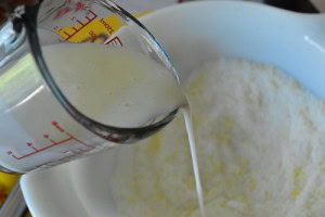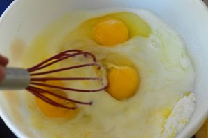 - Incorporer le babeurre (lben), le jus de citron ainsi que les oeufs.