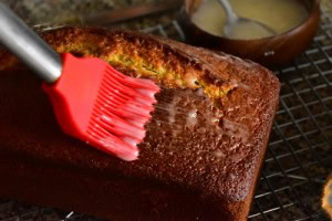 - Démouler le cake sur une grille et badigeonner la surface de glaçage ainsi que les cotes.