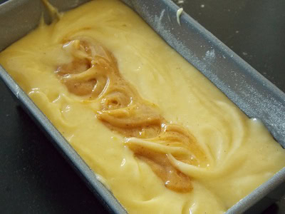 Verser la pâte à la vanille dans un moule à cake beurré et fariné.
