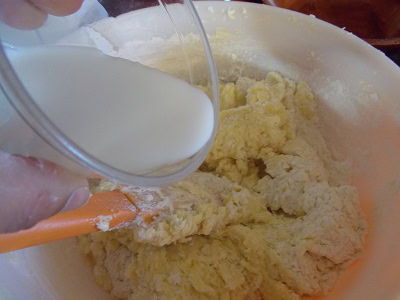 - Incorporer la farine mélangée a la levure en alternant avec le lait.