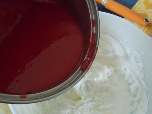 - Verser delicatement le coulis sur la chantilly et a l'aide d'une spatule l'incorporer.