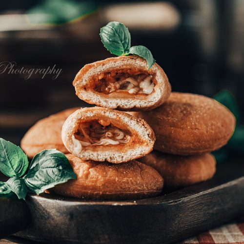 Chaque boule est ensuite garnie d’une cuillerée de sauce tomate ou sauce marinara relevée et d’un cube de mozzarella. On enfourne ensuite les pizza bombs jusqu’à ce qu’elles soient bien dorés.