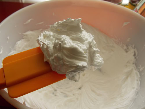 Comment réussir la meringue italienne : En général on cuit le sucre entre 116-121 C, je retire la casserole du feu à 116 C car le sucre continu à cuire. Éviter de verser le sirop sur les fouets du batteur ainsi que sur les parois du saladier, l’idéal serait en filet sur la meringue déjà montée, on diminue la vitesse du batteur tout en continuant à battre les blancs et le sirop. Il est nécessaire ensuite de battre jusqu’à refroidissement total de la meringue à vitesse maximale. On obtient donc une meringue italienne brillante et serrée.