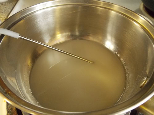 Porter l’eau et le sucre à ébullition en surveillant la température.