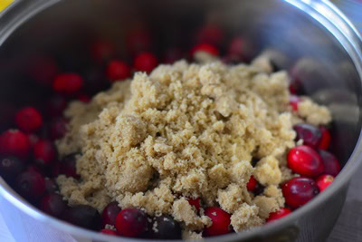 - Dans une casserole à fond épais verser les canneberges ainsi que la cassonade.
