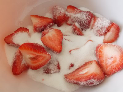 - Ajouter le sucre ainsi que le jus de citron. Laisser reposer 1 heure afin que les fraises se dégorgent de leur jus.