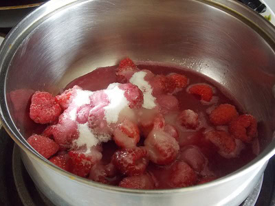 - Versez le jus de grenade, les framboises ainsi que le sucre dans une casserole.