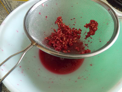 - Transférez les graines et le jus dans un blender et mixez le tout. Filtrer et récupérer le jus seulement.