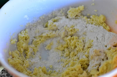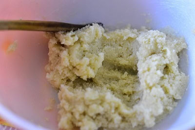 - Incorporer ensuite l'oeuf et l'extrait de vanille on obtient une pâte grumeleuse.