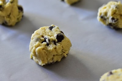 - Diviser la pâte en boule sans pour autant les former et les disposer sur une plaque recouverte de papier sulfurisé.