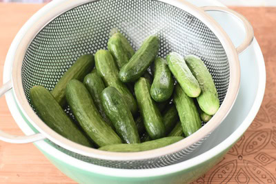 Généralement on recommande d’utiliser la variété de concombre perse ou concombre Kirby les deux sont croquants mais le premier possède moins de graines et est facile à mettre en bocal car il est plus droit et mince.