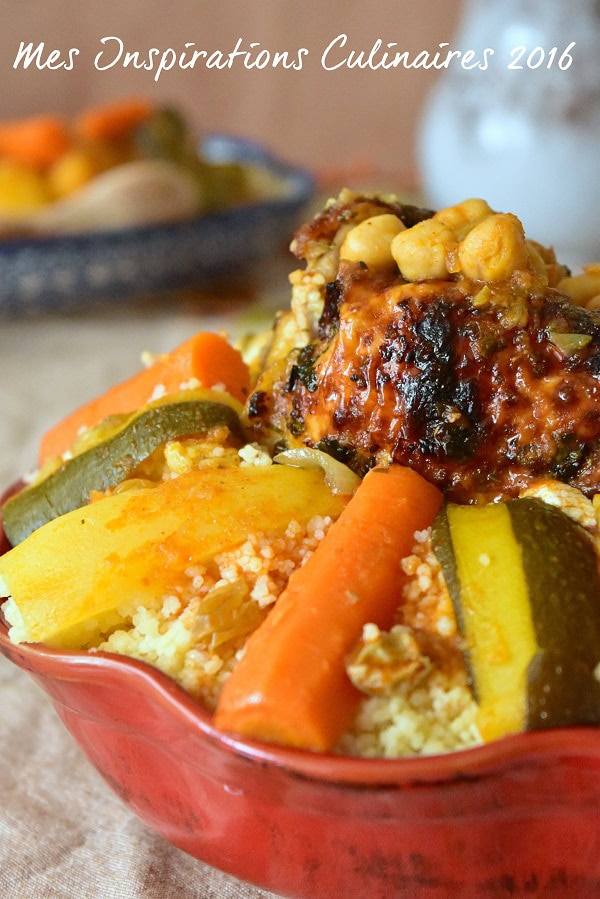 Rien de meilleur qu’une bonne recette de couscous au poulet algerien aux légumes servi arrosé d’une bonne sauce rouge sans oublier les pois chiche et mes raisins secs (facultatif mais j’en raffole). Il n y a pas mieux que le couscous pour faire plaisir à ma petite Lylou qui n’est pas fan de viande rouge, chaque famille à sa propre recette je vous avoue que mon préféré reste le couscous en sauce blanche que je prepare rarement car ma petite famille est plutôt sauce rouge.