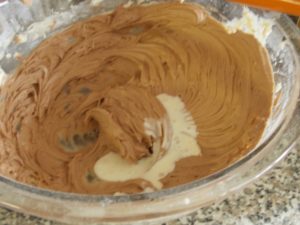 - Ajouter l'extrait de vanille (ou café) ainsi que le Nutella et mixer au batteur a grande vitesse.