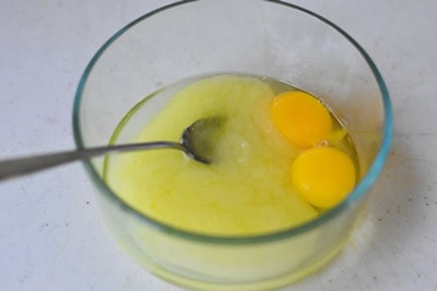 - Dans un bol profond ou un saladier (en pyrex) mélanger le beurre fondu et le sucre.